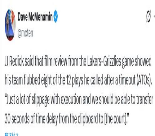 賽季至今,湖人21勝11負(fù),排名西部第五。雖然球隊(duì)上一場(chǎng)128-121擊敗灰熊,但很顯然,雷迪克依然對(duì)球隊(duì)的表現(xiàn)感到不滿(mǎn)。